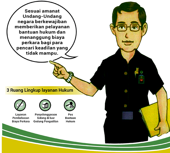 Berdasarkan Pasal 4 Keputusan Direktur Jenderal Badan Peradilan Umum No. 52/DJU/SK/HK.006/5/Tahun 2014 tentang Petunjuk Pelaksanaan Peraturan Mahkamah Agung RI No. 1 Tahun 2014 tentang Pedoman Pemberian Layanan Hukum Bagi Masyarakat Tidak Mampu di Pengadilan, bahwa: